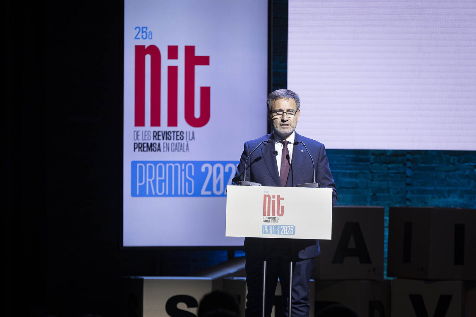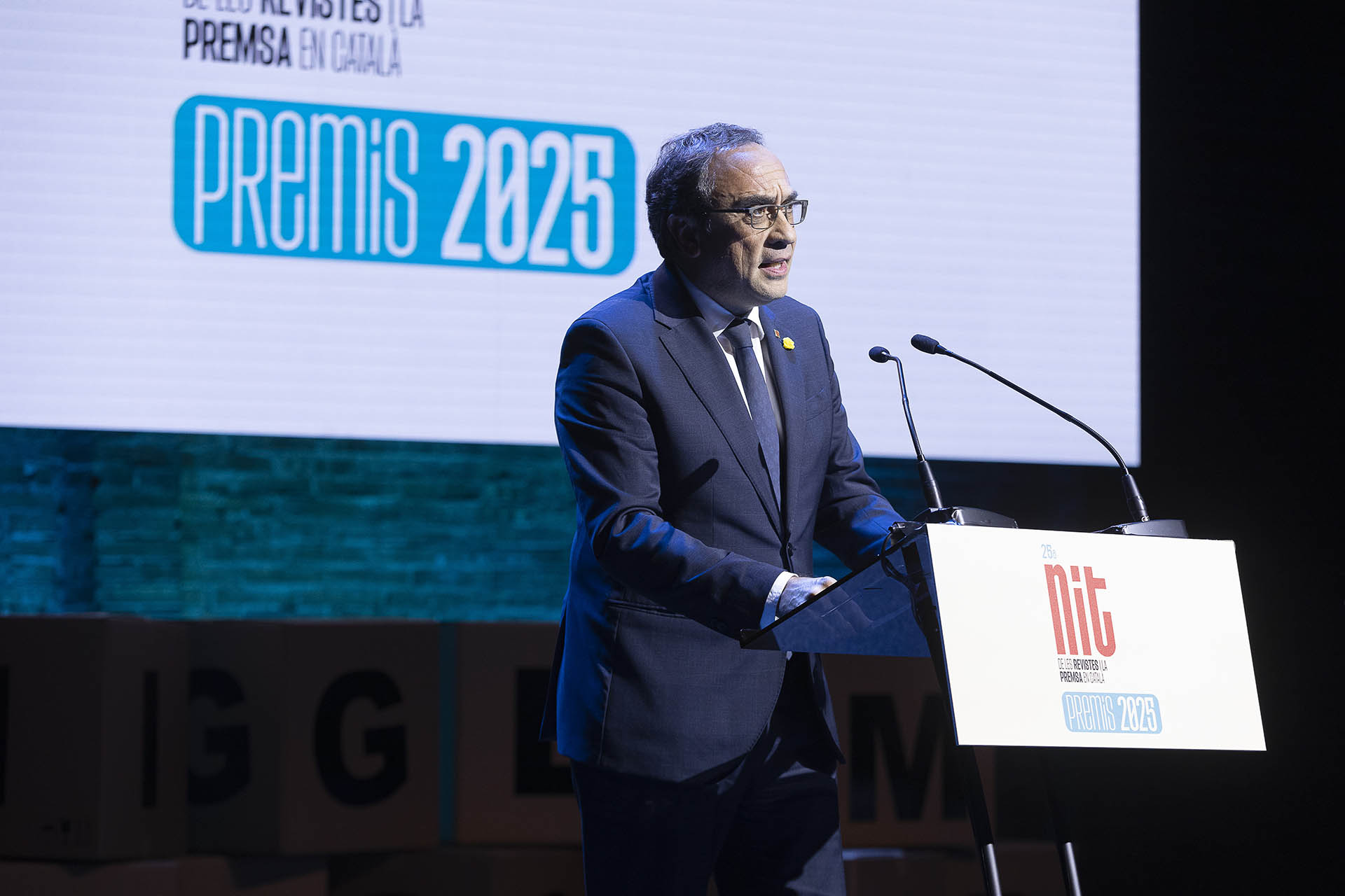 Barcelona, 5 de novembre de 2025.- En el marc de la 25a Nit de les Revistes i la Premsa en Català, el president de l’APPEC, Germà Capdevila, ha reivindicat “les revistes com a refugi en un món on el bombardeig digital és constant, 24 hores al dia, 7 dies a la setmana”. A l’acte, que ha aplegat personalitats del sector comunicatiu, cultural i social d’arreu dels Països Catalans, hi han assistit el president del Parlament, Josep Rull, i el conseller de Política Lingüística, Francesc Xavier Vila.