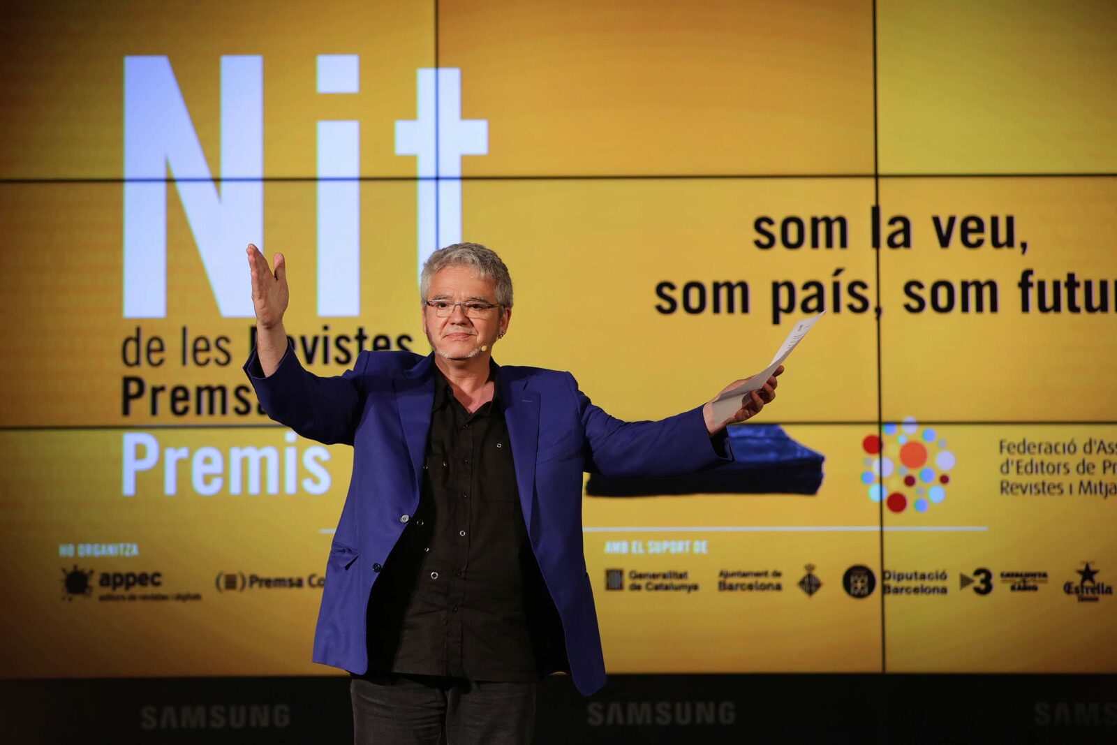 Barcelona, 4 de maig de 2015.- L’Espai Endesa de Barcelona ha acollit La Nit de les Revistes i la Premsa en Català organitzada per la Federació d’Associacions d’Editors de Premsa, Revistes i Mitjans Digitals. L’entitat agrupa a l’Associació de Publicacions Periòdiques en Català (APPEC), l’Associació de Mitjans d’Informació i Comunicació (AMIC) i l’Associació Catalana de la Premsa Comarcal (ACPC) i congrega a 500 capçaleres “que dibuixen, consoliden i certifiquen l’existència de l’Espai Català de Comunicació arreu dels Països Catalans”, ha explicat el vicepresident de la Federació i president de l’APPEC, Lluís Gendrau.